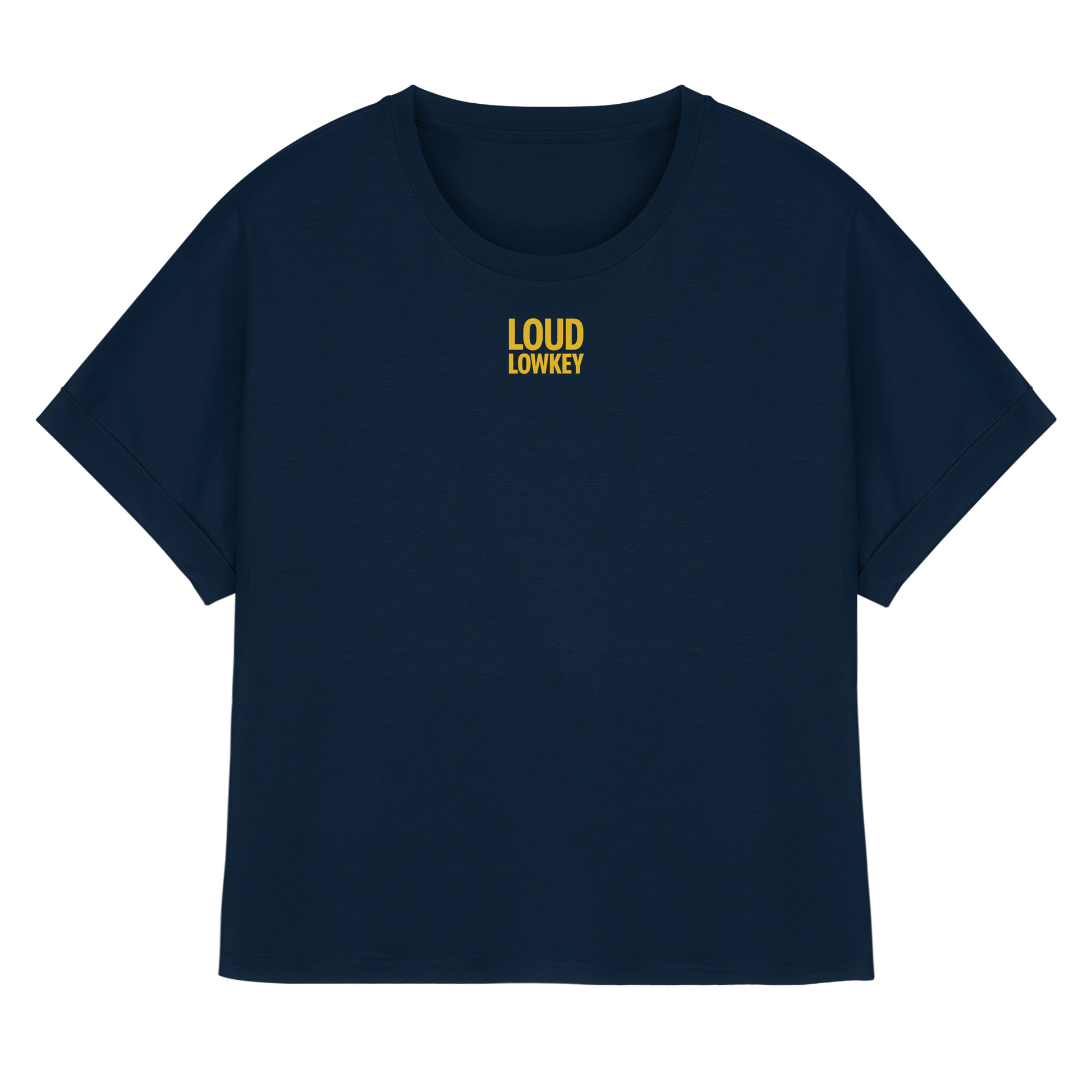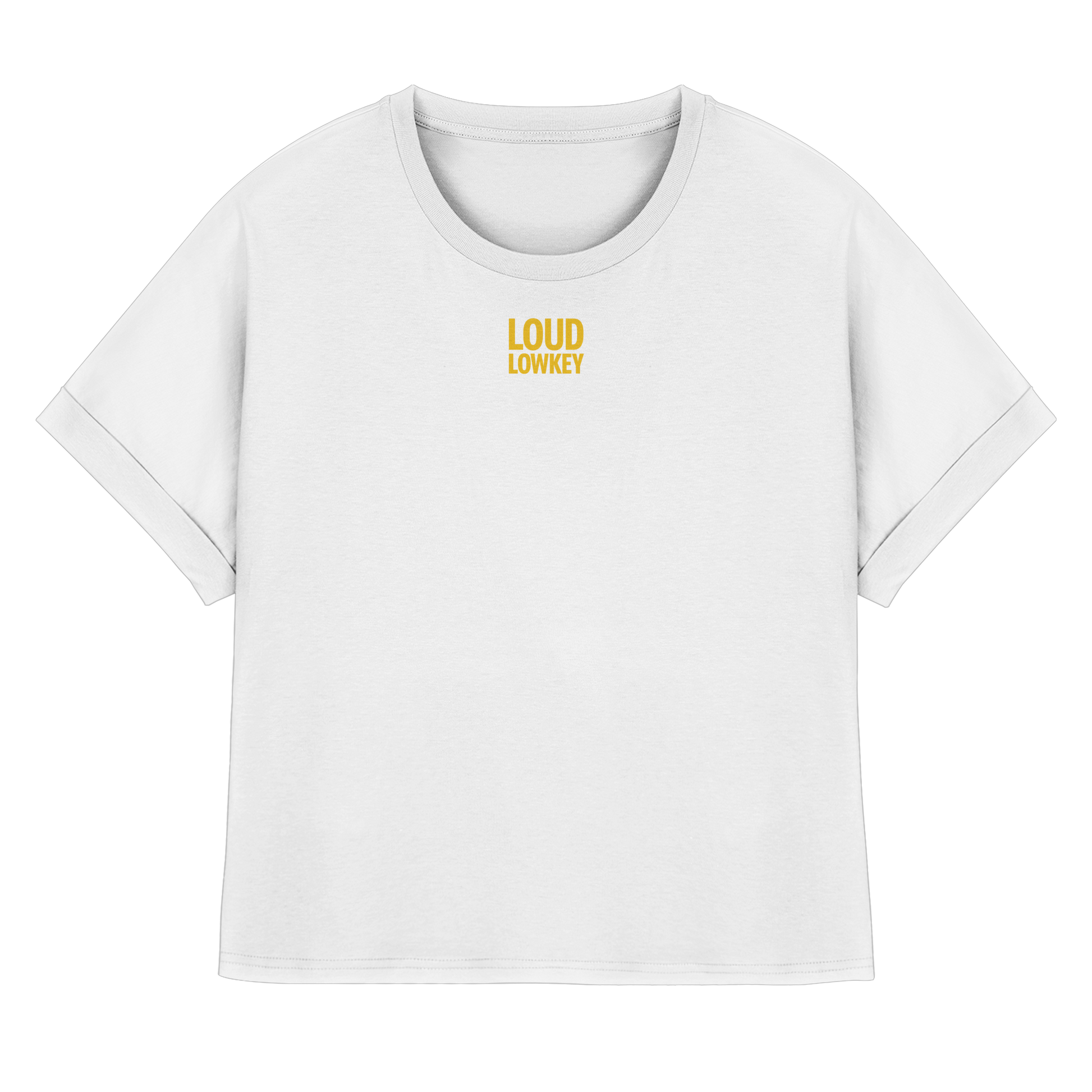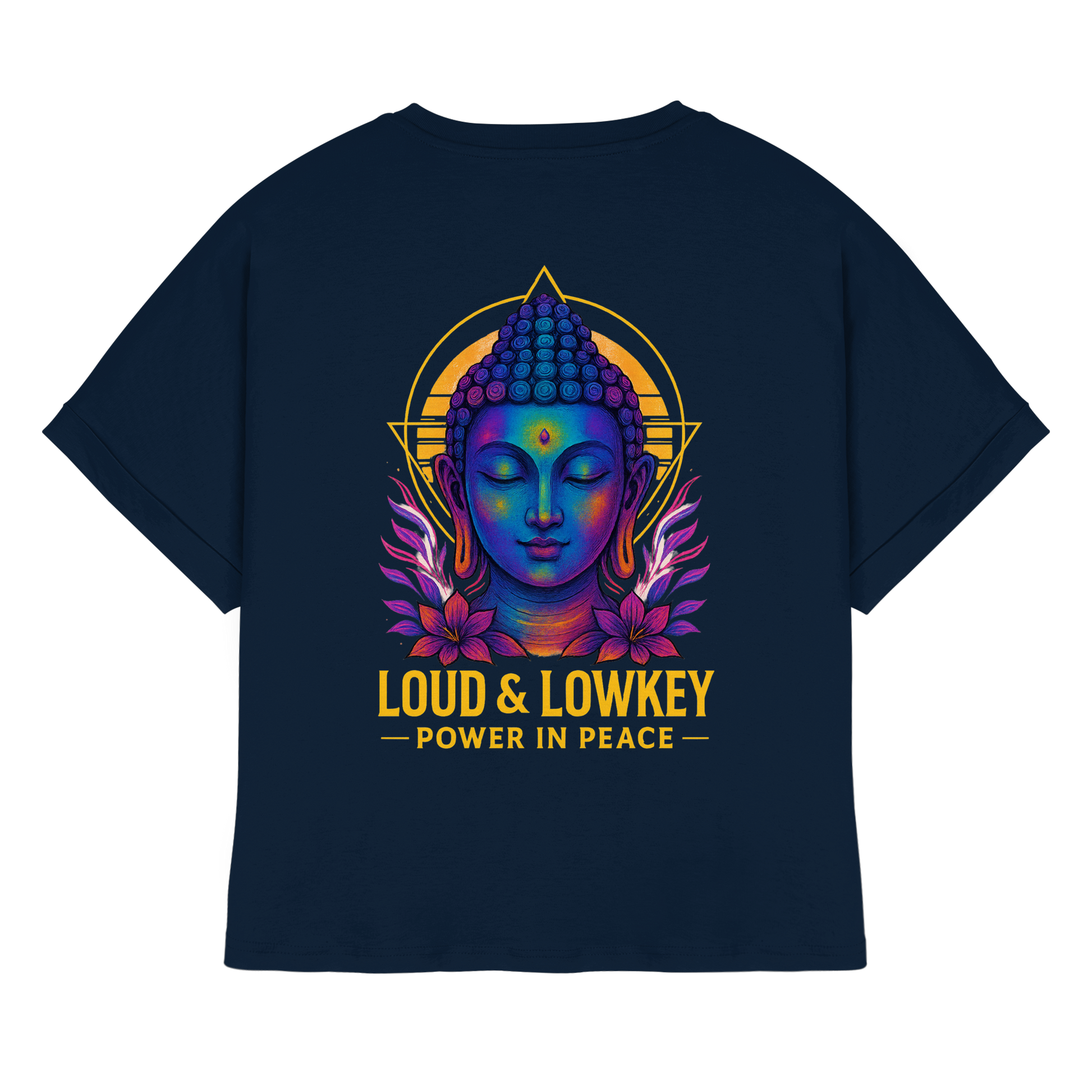 Locker, nachhaltig und mit einer starken Message – das Loud & Lowkey Women’s Organic Rolled Sleeves T-Shirt bringt entspannte Streetwear-Vibes in deinen Alltag. Das farbenprächtige Buddha-Motiv mit dem motivierenden Schriftzug Power in Peace verbindet Ruhe, innere Stärke und positive Energie – perfekt für Frauen, die wissen, dass Gelassenheit echte Kraft bedeutet.