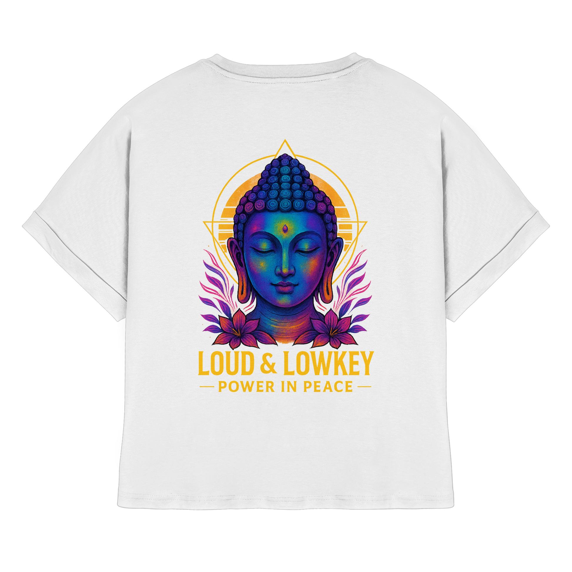 Loud & Lowkey Women’s Organic Rolled Sleeves T-Shirt – Power in Peace Buddha Design