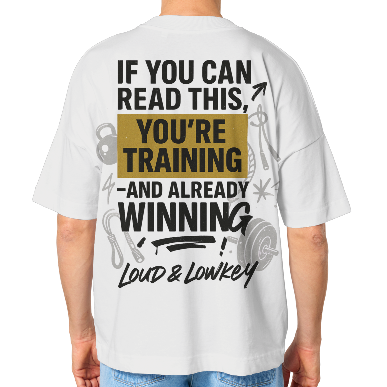 Auf der Rückseite sorgt der auffällige Print „If you can read this, you’re training – and already winning“ für maximale Motivation – im Gym, auf der Straße oder im Alltag. Das dezente Loud & Lowkey Logo auf der Brust rundet den Look clean ab.